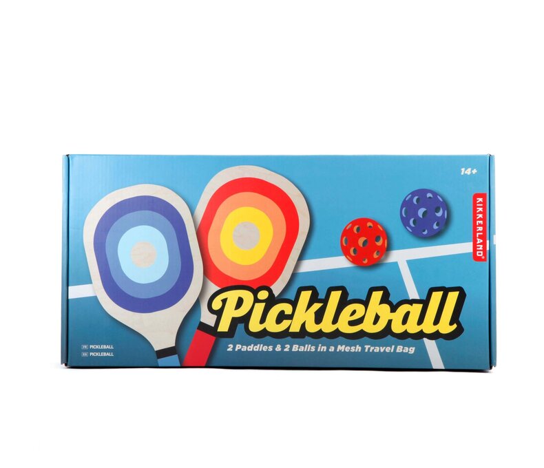 Singles game set. Played indoors or outdoors on a badminton-sized court with a slightly modified tennis net. Combines the elements of ping-pong, badminton, and tennis. Enjoyed by all ages at any skill level. Includes: 2 paddles, 2 balls & mesh carrying bag.