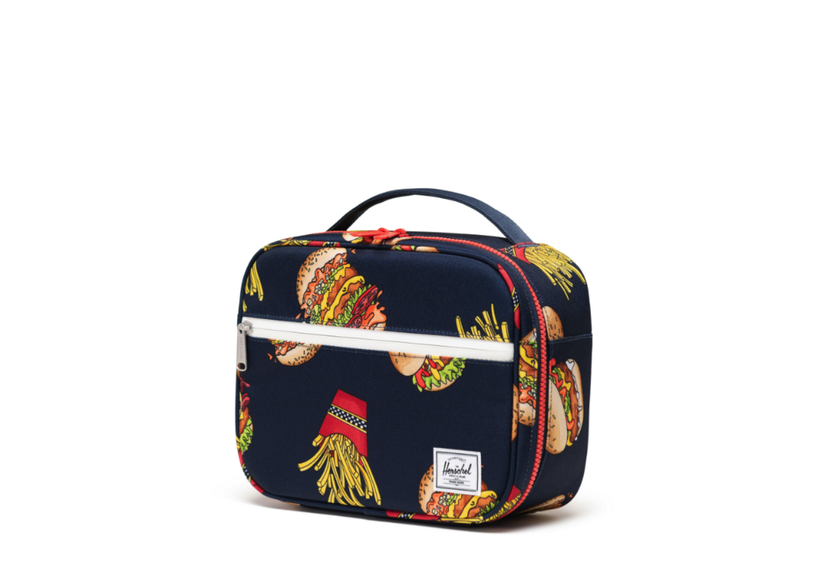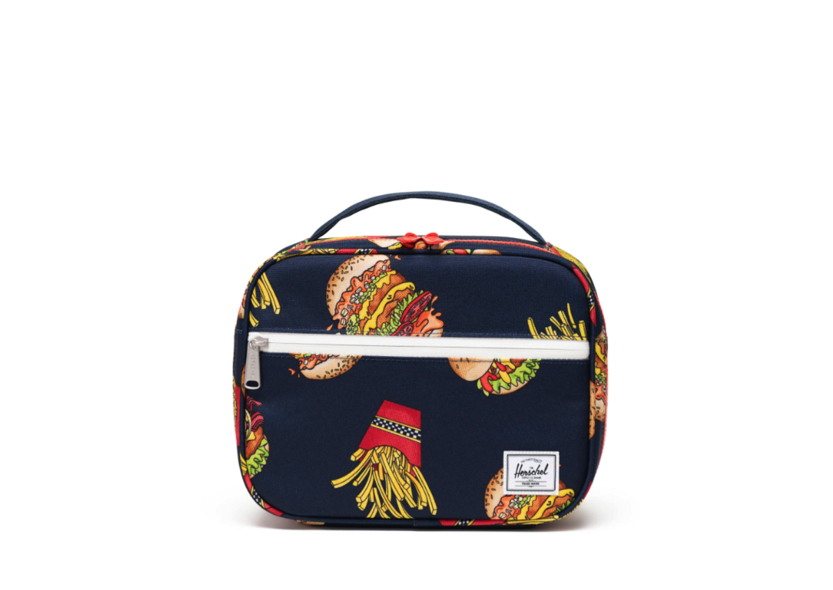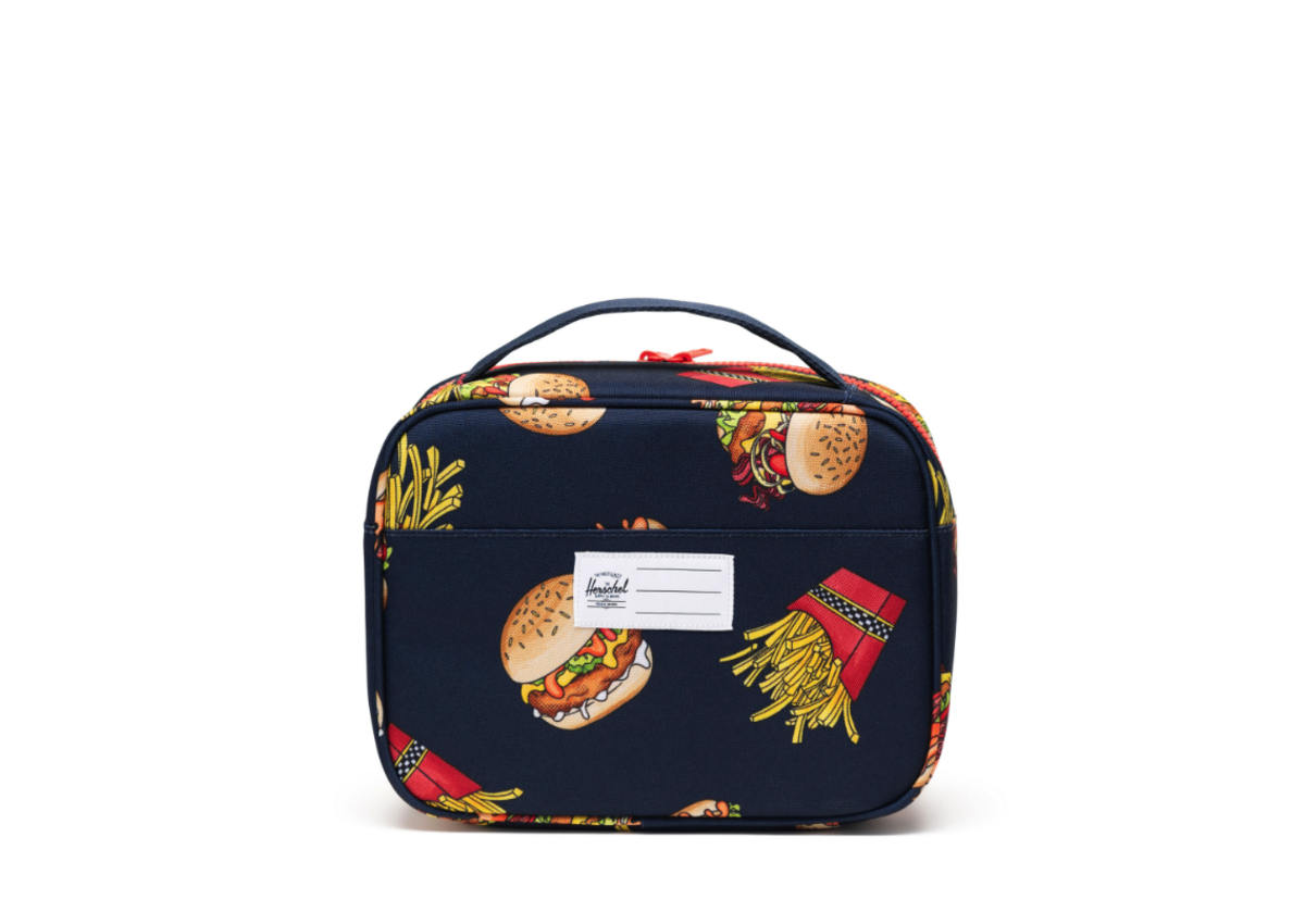 Their lunchtime companion. This durable lunch box holds snacks and sandwiches in an insulated main compartment that wipes clean. Bring it to a picnic or on journeys to the playground, cafeteria and beyond.