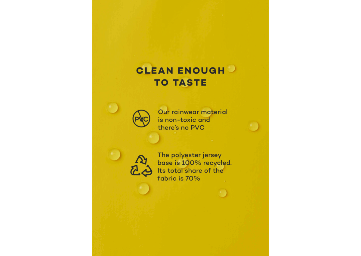 The waterproof fabric is excellent for very wet surroundings: active play and outdoor life in heavy rain or wet snowWater column over 10 000 mm