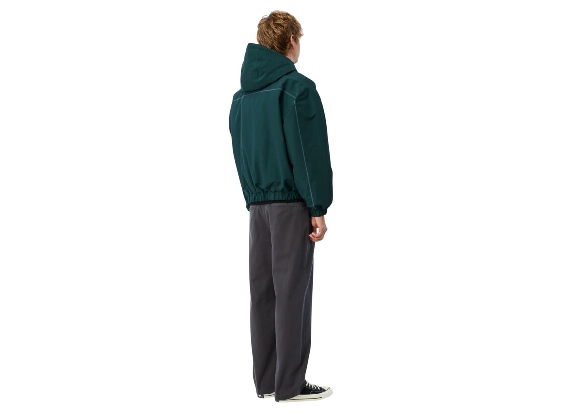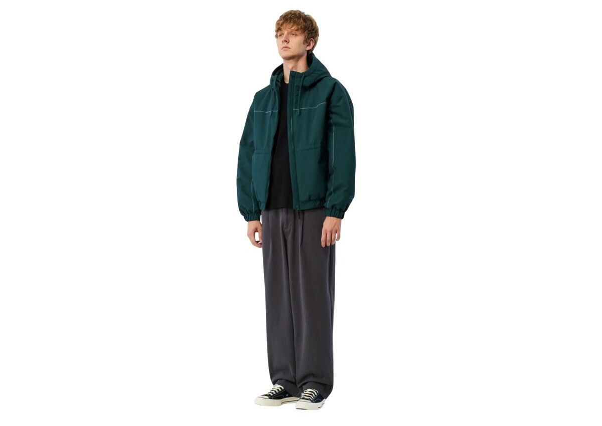 Cursive embroidery on left sleeveAdjustmentDrawstring at hood