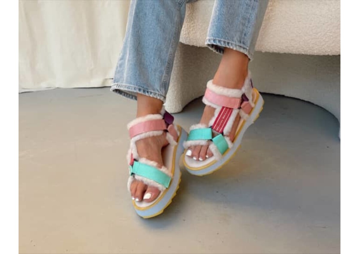 Raven Hiker Style Sheepskin Sandal - Multi Designed in pastel shades, this summer sandal will work all year round. Style with summer dresses, your favourite jeans and even as beach wear on holiday.