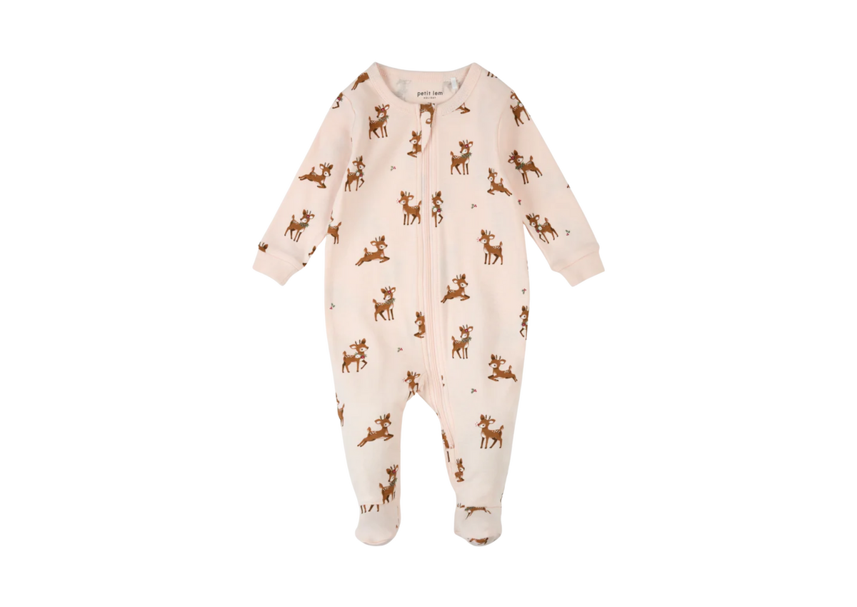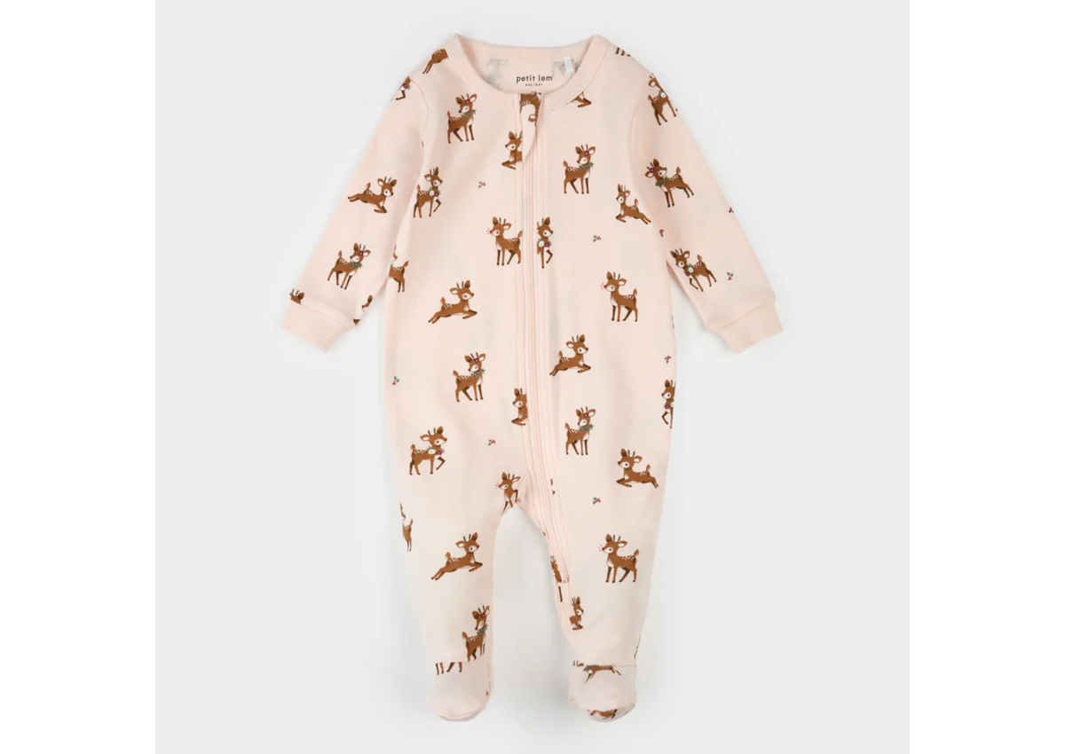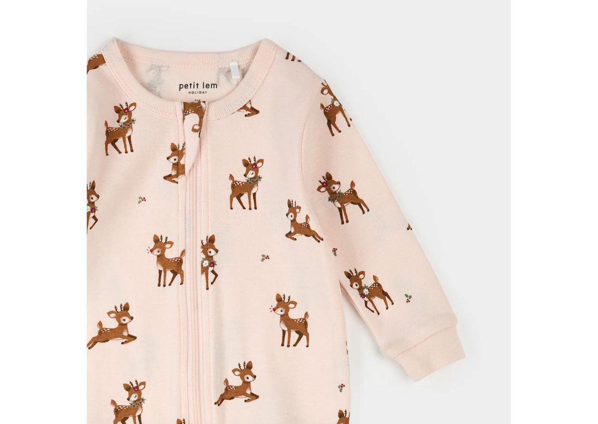 Soft, sweet, and ready for Santa’s arrival. This pretty-in-pink sleeper features an adorable Reindeer print that’s perfect for cozying up during the holidays.
