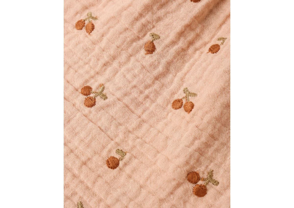 Featuring our 'melon' hue with sweet cherry embroidery detail. Enjoy summer days in this light and flowy look.