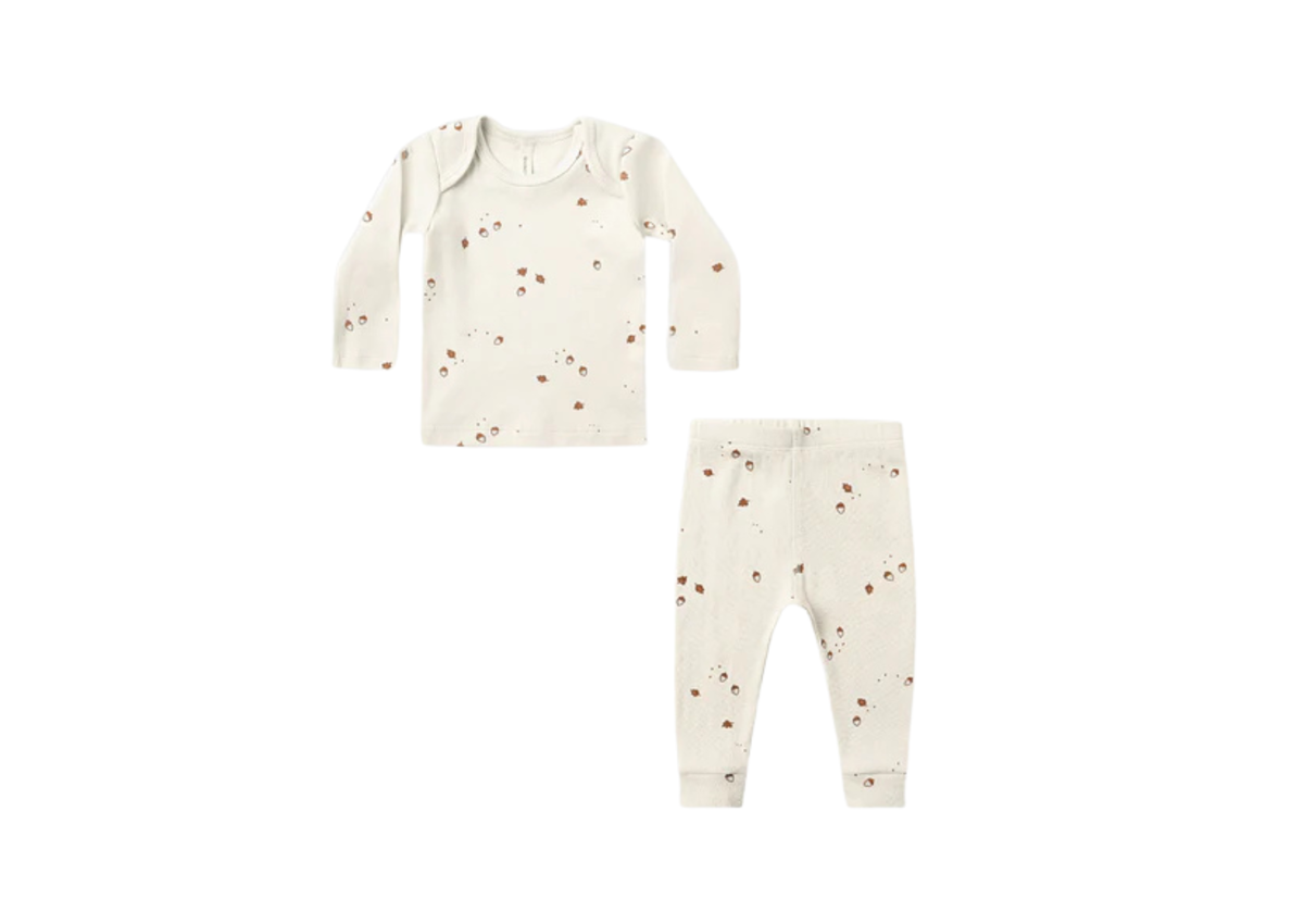 Slim-fit long sleeve tee and leggings set crafted from our soft, stretchy rib knit. Sizes 0-3M - 6-12M feature lap shoulders for easy dressing.