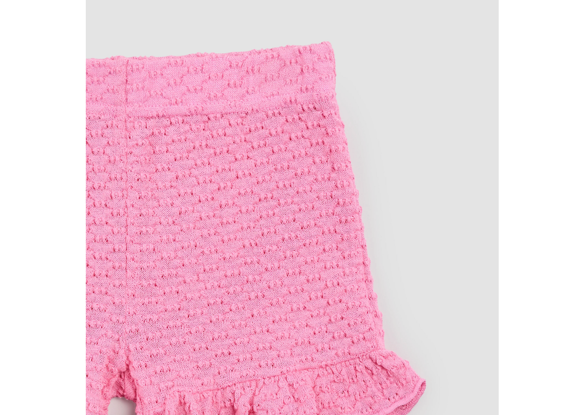 These textured shorts are made with a light and breathable popcorn knit and perfectly match the top in the same range. An elasticated waistband makes them easy to throw on for sunny mornings in the garden while the flutter trim adds something a little special that she’ll love.