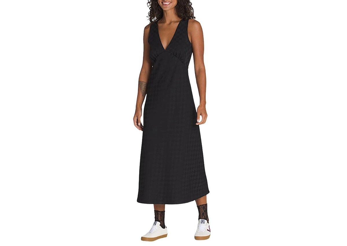 Unleash your inner pin-up in the Sandra Checkerboard Slip Dress, constructed of a satin-like charmeuse fabric with a subtle checkerboard pattern as a nod to Vans® heritage style. A bias cut and a deep-V neckline make for a flattering fit.