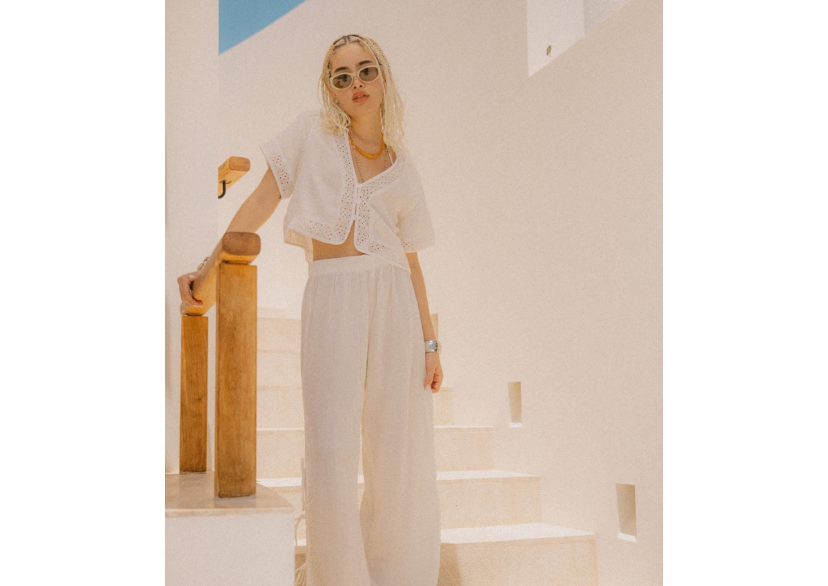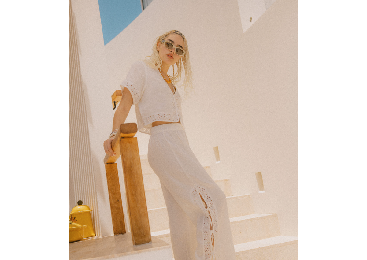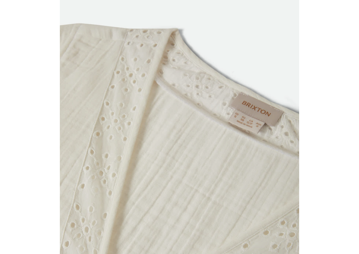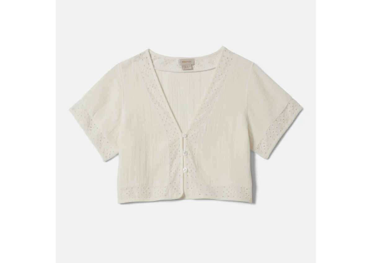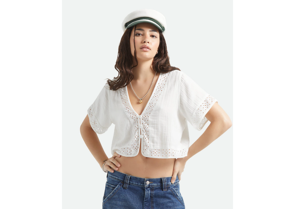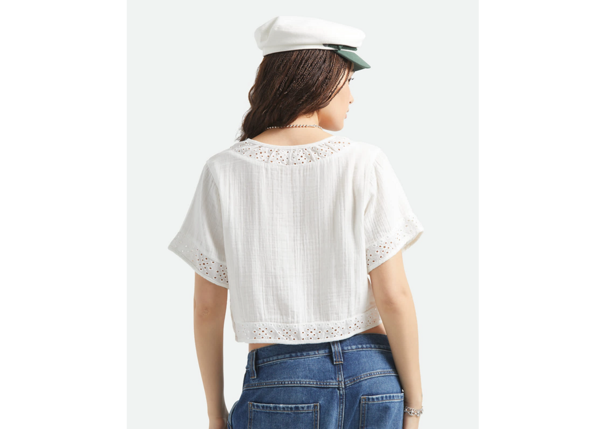 A fresh take on the classic white button-up. The Seaside Eyelet Top features 100% cotton in 130GSM yarn-dyed double cloth with a delicate eyelet pattern detailing that adds texture and visual interest. The cropped silhouette and center front button closure create a versatile piece that works solo or layered. From beach vacations to weekend brunches, this top brings elevated style to your outfit. Pair with the Seaside Eyelet Wide Leg Pant for the full look.