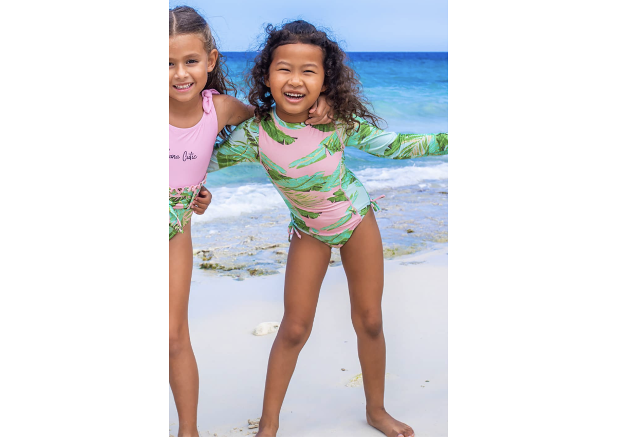 Suit up for summer in style with the Cabana Palms Girls Shimmer Long Sleeve One Piece Swimsuit! Whether she's playing at the beach or lounging by the pool, this adorable one piece will have her feeling like a little mermaid. It boasts a sparkling cabana palm print with shimmery fabric that will make her sparkle beneath the summer sun. Give your little one the perfect poolside look with the Cabana Palms Girls Shimmer Long Sleeve One Piece Swimsuit.