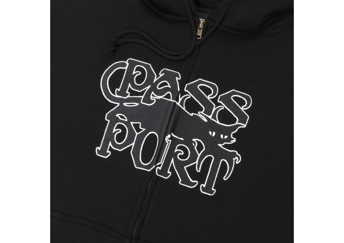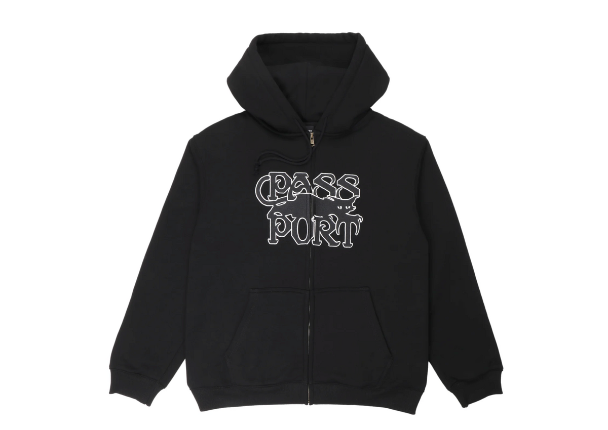 Pass~Port Slinkin' Zip Hoodie in black from range #46. This Zip Hood features a direct embroidered front design and is made from a Cotton Poly Blend.