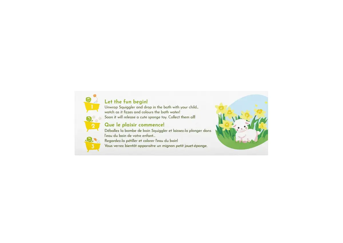 How to use: Fill the bath and simply drop in a Bath Squiggler. Watch as the Squiggler fizzes away, colouring the water while scenting the air with a fruity fragrance. As the Squiggler dissolves, out pops a cute sponge character – collect them all!