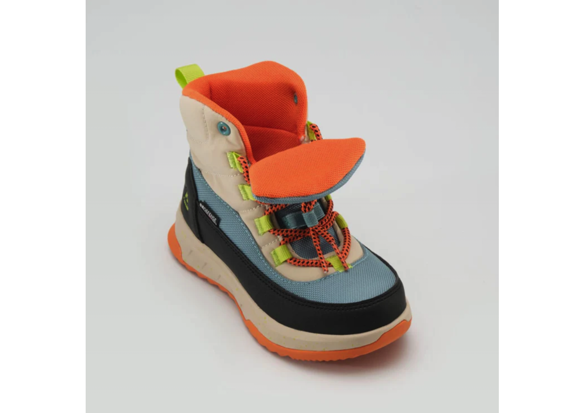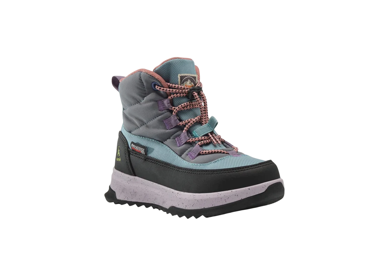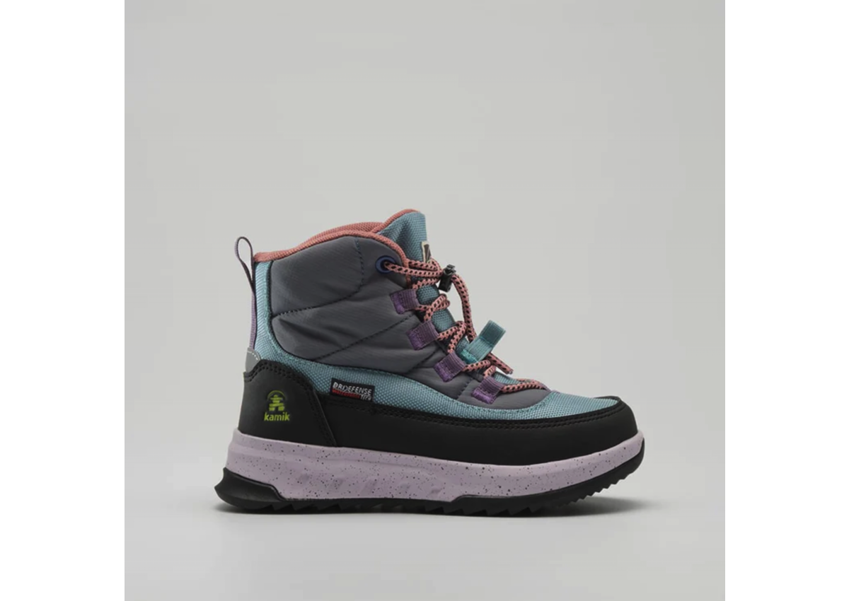 Ready for some snow day shenanigans? The Stormy Mid 2 kids' winter boots deliver all the comfort and protection they need, with a splash of style. Featuring a waterproof DriDefense membrane, cozy fleece insulation, and a cushioned EVA midsole, these boots keep feet warm, dry, and comfy from morning to night. The bungee lacing system with an Easy-Grab Lace Lock makes it easy to get a snug, secure fit in no time. Plus, the grippy outsole provides the traction they need for an epic snowball battle royale!