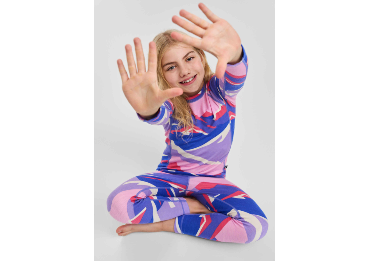 Why freeze, if you can be warm? The secret of this Reima base layer set is a double-face knit: soft, silky lyocell against the skin to absorb moisture and give a smooth feel, with wool on the surface for the best possible warmth at the base layer. The lyocell absorbs moisture away from the skin and helps kids feel fresh. The wool keeps kids warm, even if they become sweaty after busy play. This combination in a kids' thermal set is ideal for thermal comfort - both indoors and outdoors.