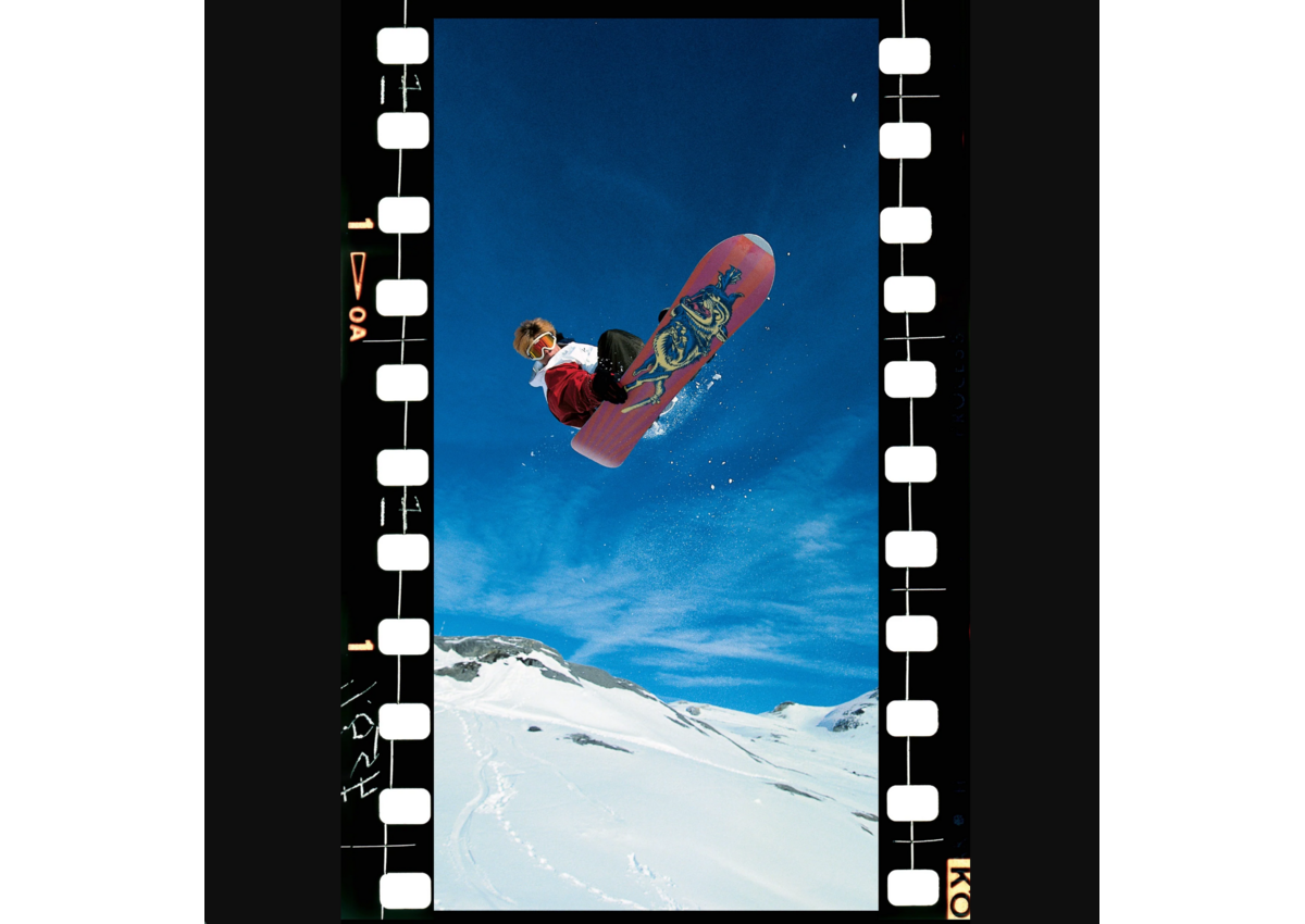 The photo was taken with the Burton Snowboard team riders Jim Rippey and Gutch during a session at Laax, Switzerland November 1993.