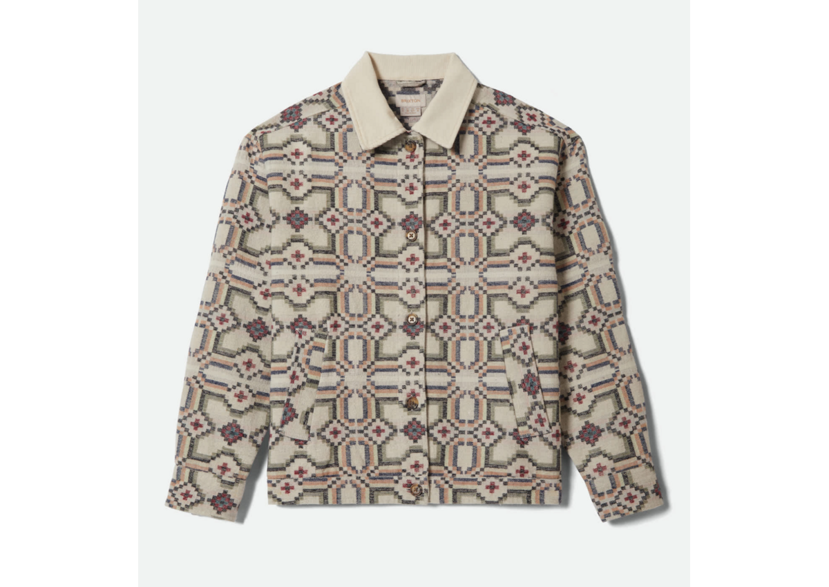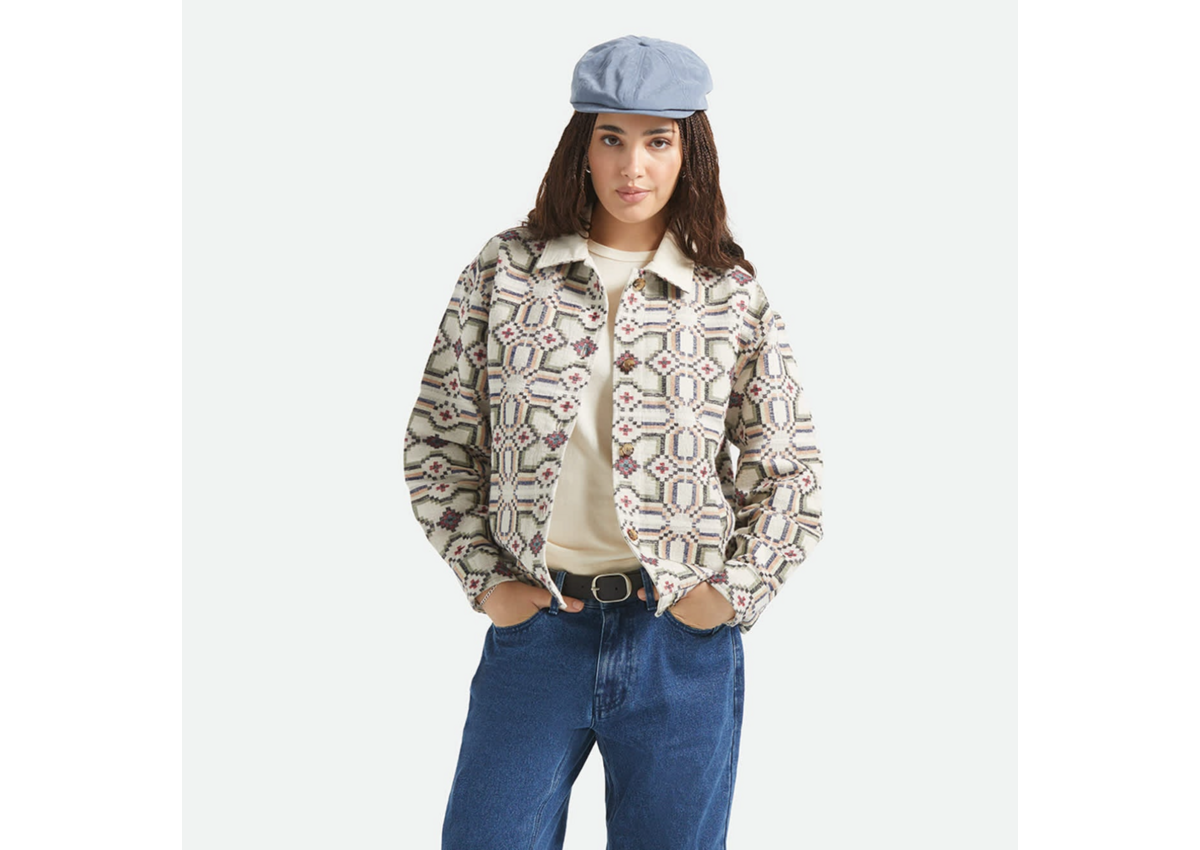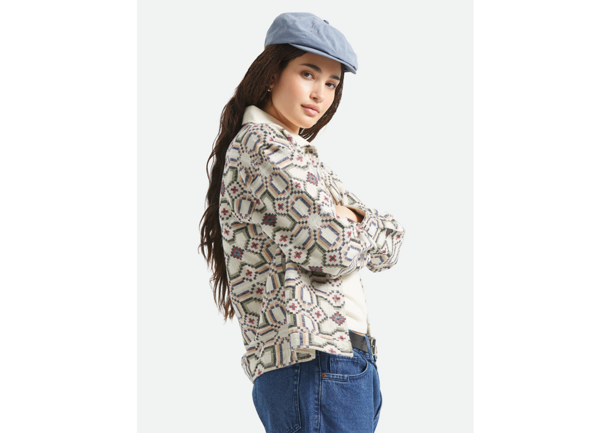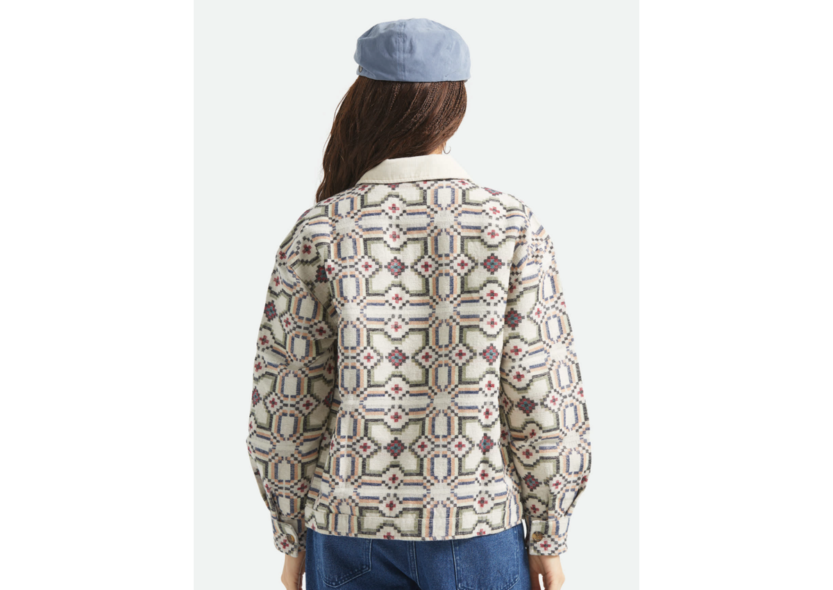 The perfect layer for those in-between days. The Alfama Jacket features double brushed jacquard flannel in a stunning floral tile pattern that adds character to any outfit. Corduroy collar and welt pockets bring texture and authentic details, while the center front button closure keeps the silhouette clean. Whether you're strolling through new cities, grabbing dinner with friends, or just need something extra for cooler evenings, this jacket has you covered in style.