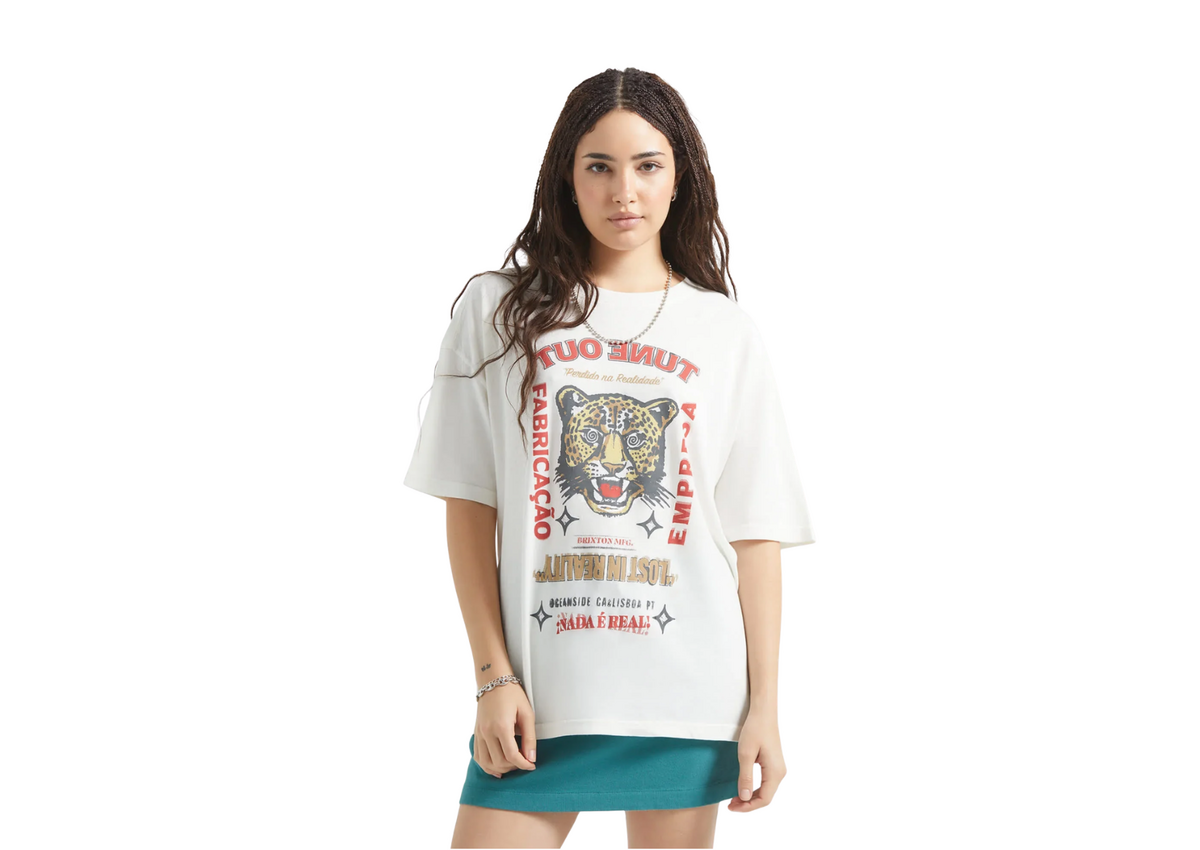 Hit the road in comfort with The Getaway Oversized Boyfriend Tee. Crafted from 100% Better Cotton Initiative jersey, this vintage-inspired piece features a worn wash that feels authentically lived-in and a retro jaguar screenprint that brings untamed style to every adventure. The relaxed boyfriend silhouette works beautifully layered or solo, moving effortlessly from road trips to beach days to cozy weekends. Soft, breathable cotton keeps you comfortable whether you're exploring new places or embracing the art of doing nothing.