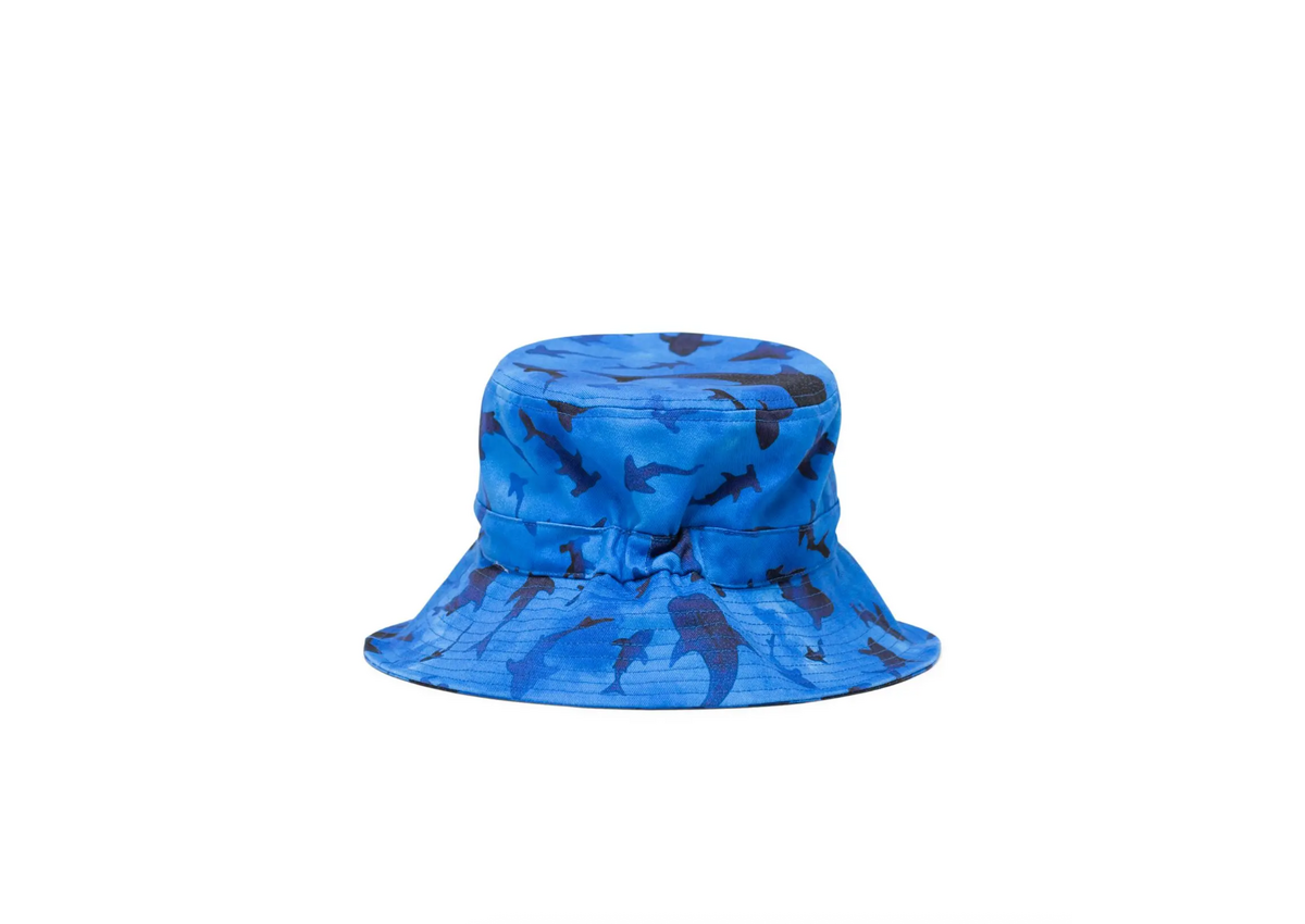 A warm weather essential, sized for children 2 – 4 years old. This bucket hat is made with a detachable self-fastening strap and wide brim to shield their face from the sun.