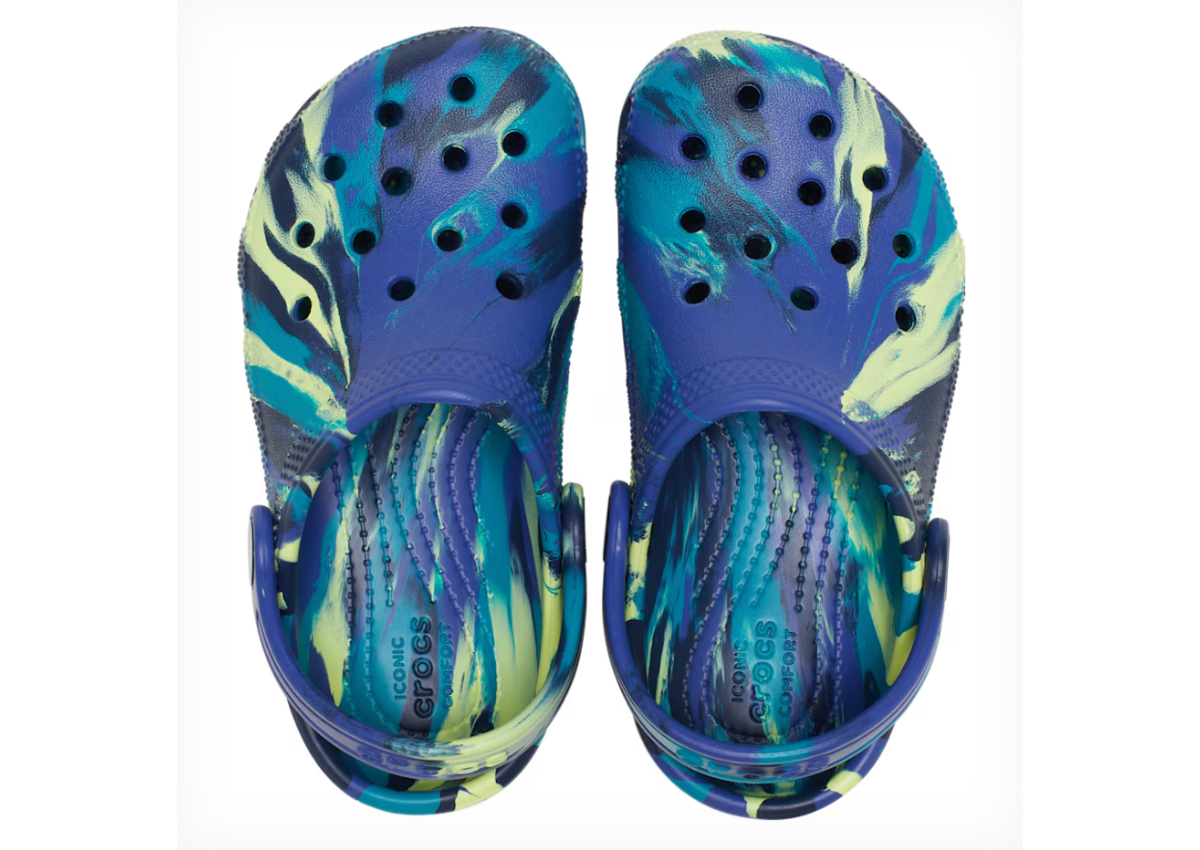 Our new marbled Croslite™ foam creates a colorful effect that is completely unique. While all marbled shoes have the same wavy look, no two shoes are exactly alike. Crocs Classic Clogs feature lightweight Iconic Crocs Comfort™ and a color for every personality, and remind kids of all ages to go out and play.