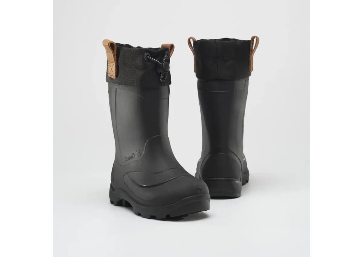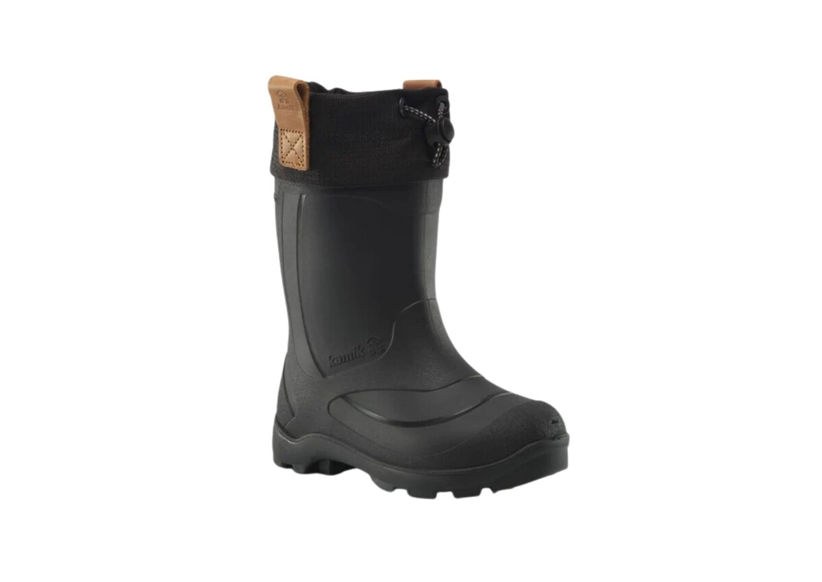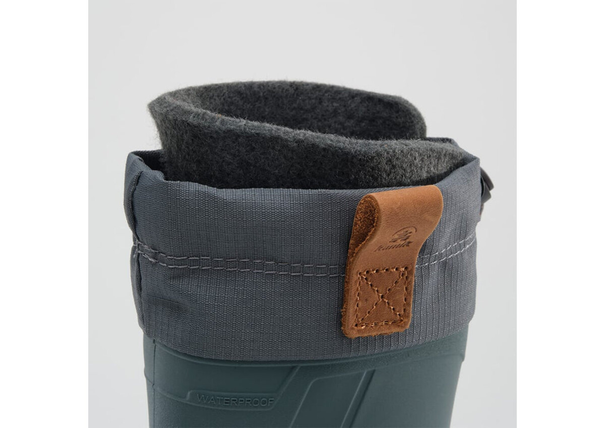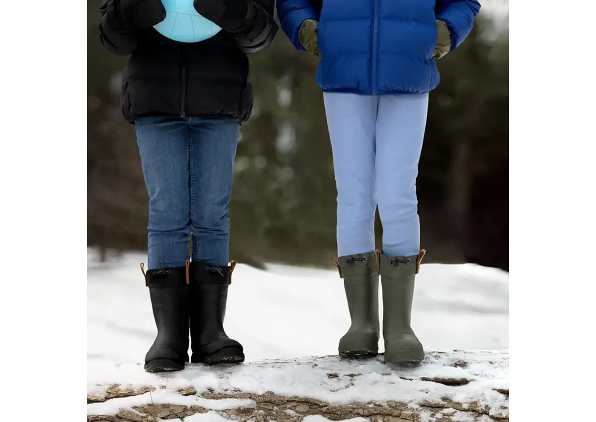 Cold-weather adventures start with warm feet! That's not a problem with our Tundra Jr rubber boots, featuring 100% waterproof synthetic RubberHe and a cozy Thermal Guard liner. The adjustable nylon collar helps to keep snow out, while the leather pull tabs offer an easy way to pull them on. Your child will be stable on their feet thanks to a lightweight design and multi-directional treads that offer better traction.