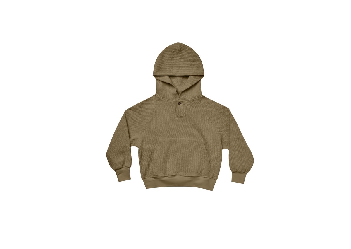 Relaxed fit henley hoodie in soft and cozy textured knit sweatshirt fabric.