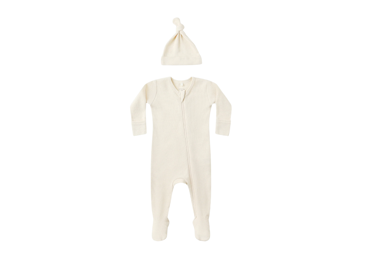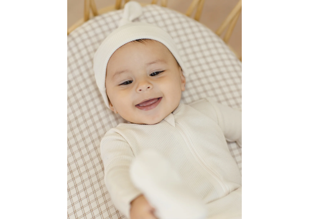 Made from our soft waffle fabric, this long sleeve sleeper keeps your little one cozy all season long. Paired with a knotted hat, it’s the perfect set for comfort and warmth. Sizes NB - 3-6M feature fold over hand mitts. Sizes 6-12M - 12-18M feature rubber dots on the soles.