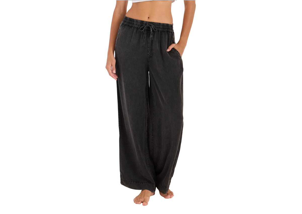 The Washed Up Twill tie-front pant slips on with an elasticated waist, opening into a wide-leg, loose fit that breathes easy.