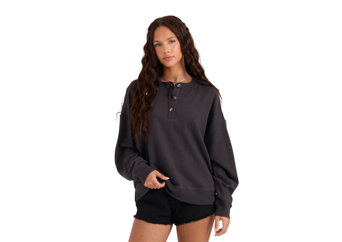 The Lived In Fleece Henley runs relaxed with drop shoulders and a clean crew neck, finished with an easy button front.