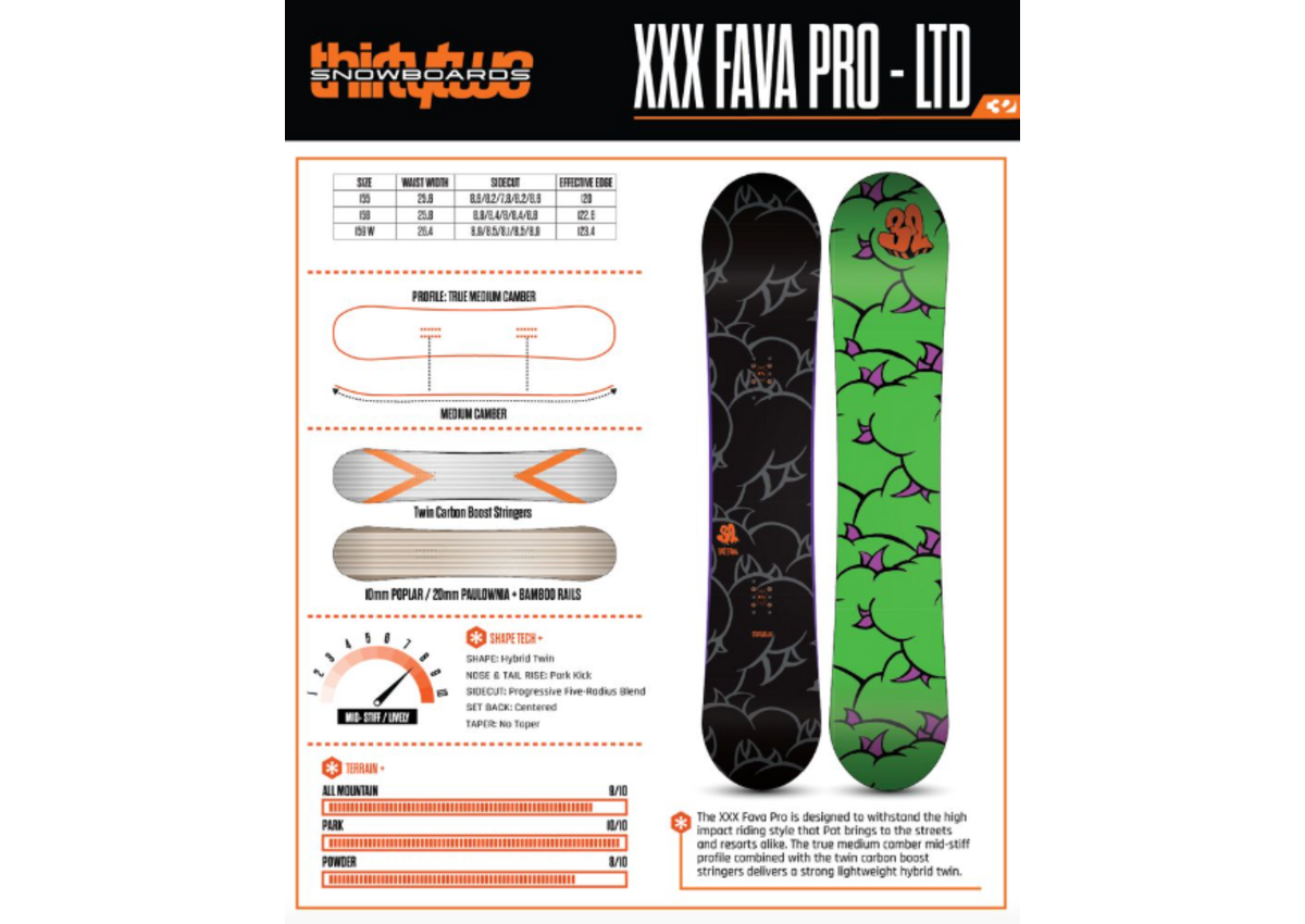 The XXX Fava Pro is designed to withstand the high impact riding style that Pat brings to the streets and resorts alike